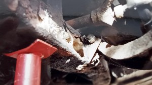 I was poking about underneath looking for rot (I never had to look far) when my attention strayed to the chassis. I jabbed at it with my screwdriver