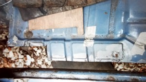 Having welded the sections and ground off the surplus weld I was then in a quandry on what to do with the bare metal. “Paint it” I hear you say. Well, better than nothing, in the end though I decided to flood the still warm steel with Waxoyl so that it could well and truly penetrate all the nooks and crannies in the welded joints. To this day the floor repair sections have been treated only with Waxoyl and Waxoyl underseal. It seems to work.