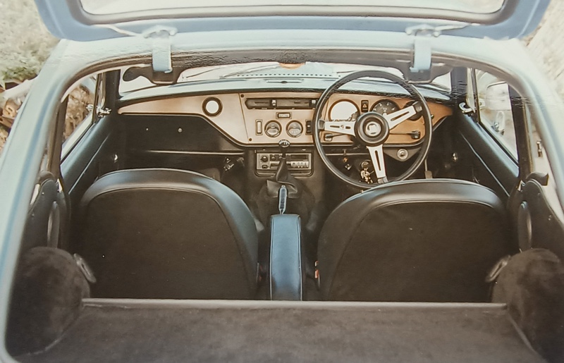 purred on by the car being mobile again I made rapid progress with the rear windows, tailgate, new rear luggage shelves, headlamps, and carpet set fitted by Jock with his usually attention to detail. I anguished long and hard over in-car entertainment. An original GT6 long/medium wave radio would be not only hard to find but also restrict me to a diet of Radio Four and Five, not exactly my cup of tea. Eventually I lashed out a whole five pounds on a digital radio cassette player from Chesterfield flea market. It needed some technical fiddling to make it go but now I have Radio 2 and the ability to play my Ray Conniff cassettes; well worth compromising originality for!